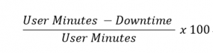 where Downtime is measured in user-minutes; that is, for each month, Downtime is the sum of the length (in minutes) of each Incident that occurs during that month multiplied by the number of users impacted by that Incident.
